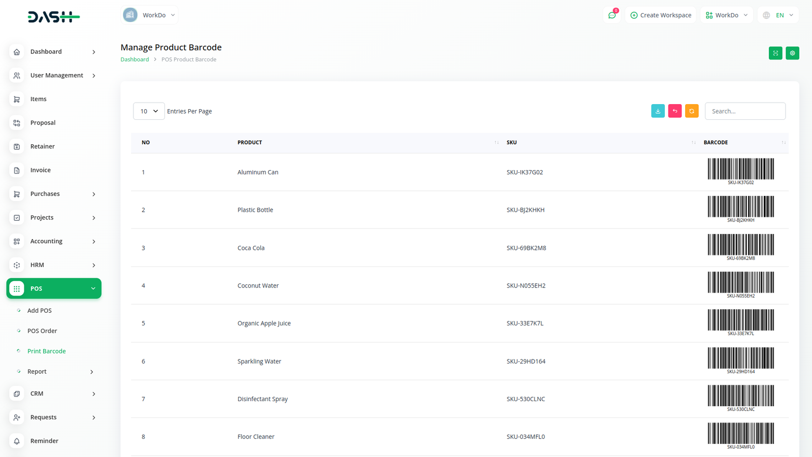 Enhance efficiency in your sales workflow with Dash SaaS POS is streamlined barcode printing feature. Easily generate barcodes for products and orders by selecting items and specifying quantities. This functionality simplifies inventory management and accelerates checkout processes. Improve operational productivity by swiftly printing as many barcodes as needed, empowering your business to meet customer demands effectively. Experience convenience and flexibility with Dash SaaS POS is barcode printing capability, tailored to optimize your sales operations.